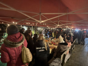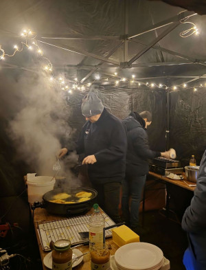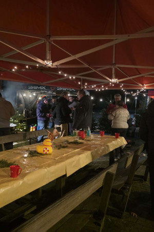 Bei Glühwein, Kakao, Kaffee, frisch gebackenen Crepes und Poffertjes, herzhaften Reibekuchen sowie leckerem Grillgut war für jeden Geschmack etwas dabei. Rund um die Feuertonne konnten wir uns aufwärmen, ins Gespräch kommen und den Abend in gemütlicher Atmosphäre genießen – umgeben von Schnee, Lichtern und winterlicher Stimmung.